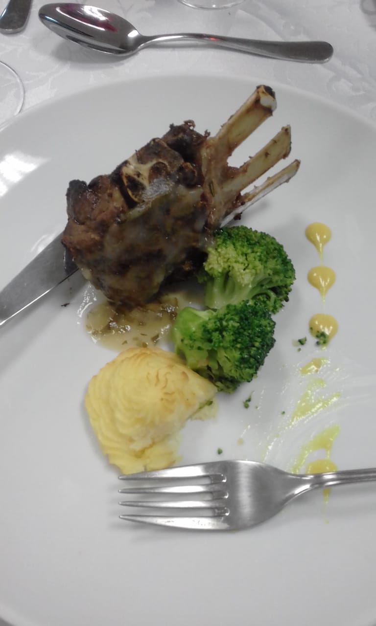 O menu do almoço foi composto de Salada de Abacate com Manga no Cestinho, como entrada. Carré de Cordeiro com Molho de Hortelã, Batata Duchese e Brócolis, e Lombo Recheado com Damasco e Nozes ao Molho de Mostarda foram as duas opções de prato principal. E para sobremesa, um delicioso Tiramissu.