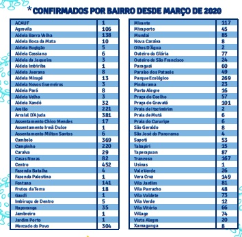 A Secretaria de Saúde de Porto Seguro divulgou boletim epidemiológico em 10/01/21, informando que, de 14/03/2020 – início da pandemia no município - a 10/01/2021 foram notificados 22.261 casos de Covid-19, sendo 9.122 casos descartados, 4.465 confirmados e 8.674 casos suspeitos, classificados como síndrome gripal.