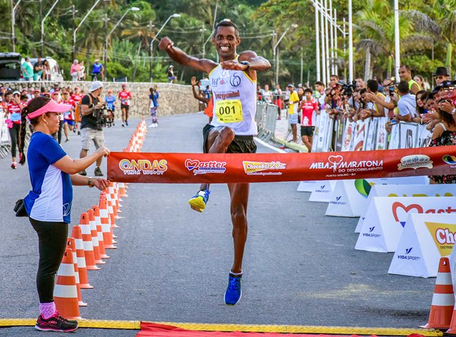 Na chegada, emoção e alegria. As comemorações vieram em forma de oração, como gratidão a Deus, sorrisos, aplausos, gritos de superação, e até dancinha em ritmo de axé. O campeão geral da maratona foi o atleta Giovane Santos, ex-lavrador, que desatou a fita com 01:06:03 de prova. "Estou muito satisfeito em correr na Meia Maratona, fui muito bem recebido e estou otimista que a prova em breve se torna um evento de uns três dias de programação com grande número de participantes profissionais internacionais e nacionais”, disse Giovani, que teve a oportunidade de contar sua história numa palestra motivacional no sábado, 14/04, no Congresso Técnico realizado no Memorial da Epopeia que reuniu os competidores para repasse de informações sobre as regras da competição.