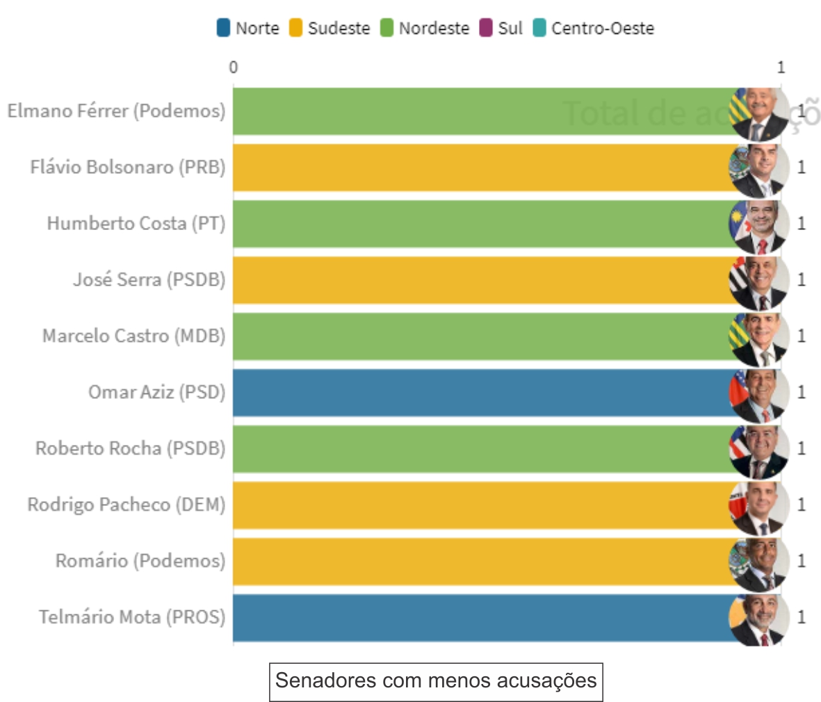 Em 2019, eram 25 os senadores alvos de inquérito judicial, três a menos do que o levantado em 2020. Apesar do pequeno aumento registrado em relação ao ano passado, os números ainda são significativamente menores que os da legislatura anterior.