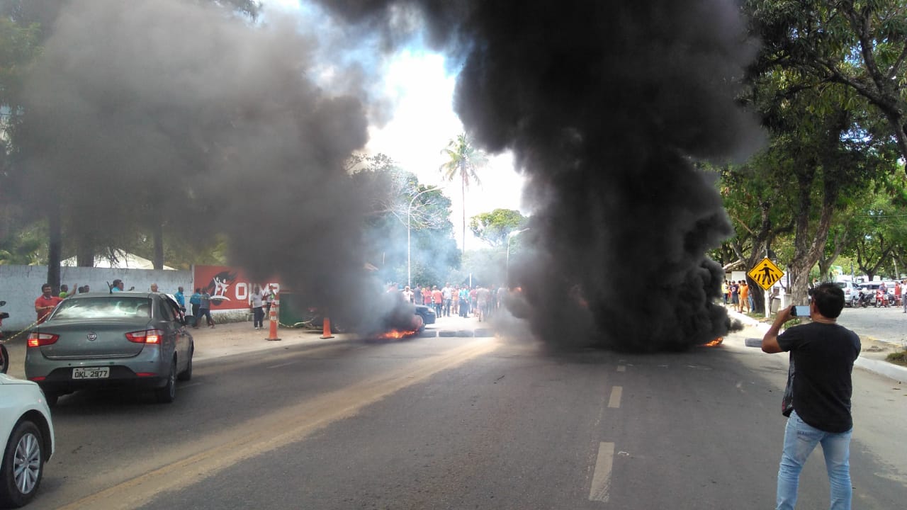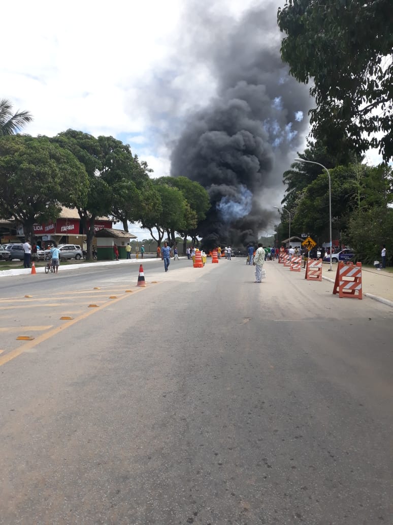 Taxistas de Porto Seguro fizeram um ato de protesto na avenida Adno Musser, próximo à Rodoviária, no dia 05/09/19. Durante a manifestação, que aconteceu no final da manhã, eles queimaram pneus e bloquearam o acesso, causando lentidão no trânsito.