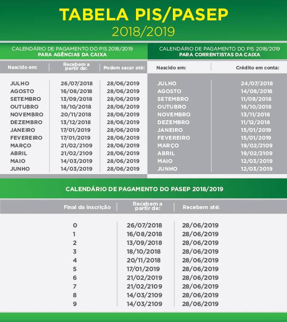 De acordo com o calendário, os nascidos entre janeiro e junho receberão o PIS no 1º trimestre. Em qualquer situação, o recurso ficará à disposição do trabalhador até 28/06/19, prazo final para o recebimento.