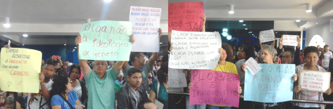 A votação e os discursos foram realizados sob vaias, gritos de apoio e frases de efeito por parte do plenário. Para Chico Cancela, representante grupos favoráveis à ideologia de gênero nas escolas, “esse debate envolve não só refletir sobre as questões de sexualidade, mas pensar todo o processo de formação da nossa sociedade, perceber que existe, sim, uma diversidade de gênero na sociedade, e que a escola precisa ser um espaço para refletir sobre a diversidade”. Ele afirmou que protocolou uma solicitação de audiência pública para o debate do assunto.