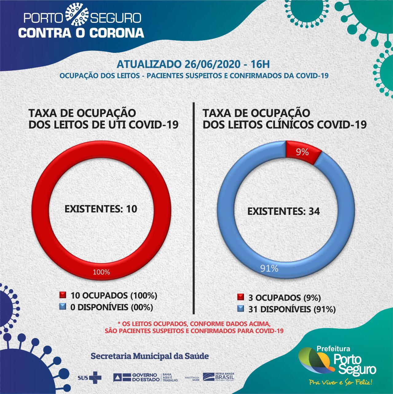 No município, o número de casos registrados desde março chegou a 502 em 26/06/20. O 6º óbito foi registrado na data e o município tem todos os 10 leitos de UTI ocupados. Dos 34 leitos clínicos, 31 estão disponíveis. 270 pacientes estão em isolamento respiratório, 08 internados e 142 aguardam resultado de exame. 480 pessoas apresentaram até a data síndrome gripal.