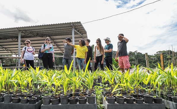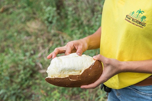 A agrônoma Juliana Dória, 25, filha dos proprietários, é quem recebe os visitantes. A experiência começa na sede da fazenda e envolve uma caminhada para conhecer parte dos 800 hectares e a agroindústria, produtora de coco verde, cupuaçu e açaí. Parte da produção segue para fora do estado. Mas quem chega à fazenda tem o privilégio de provar dessas delícias, a começar pela água de coco ou um suco fresco, logo na chegada. Além disso, podem participar da colheita, se for época. A visita passa pela indústria, onde acontece do processamento à embalagem para consumo e é concluída no pequeno restaurante rústico, com a degustação de açaí e comidas feitas com produtos da fazenda.