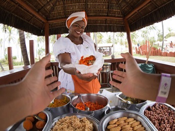 Ah! e por fim a deliciosa e colorida culinária nordestina, que inclusive tem representantes registrados e tombados pelo Instituto do Patrimônio Histórico e Artístico Nacional, o Iphan, como é o caso da Cajuína e do Acarajé. E o que dizer do cuscuz, da tapioca, do vatapá e da moqueca (ambos com frutos do mar e azeite-de-dendê), do baião de dois, do mugunzá, do caruru e do sarapatel?