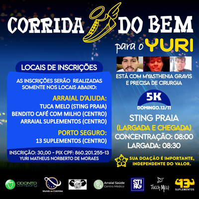 Evento esportivo beneficente para custear a cirurgia de Yuri, que tem Myiasthenia Gravis