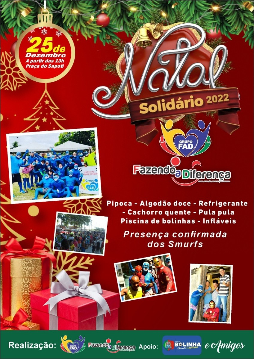 Esta chegando o nosso 18° Natal Solidário do Grupo FAD Nosso coração se enche de Alegria em ver o brilho no sorriso da nossa Criançada. Você e toda sua Família é o nosso convidado especial venham. Grupo FAD ❤️??? Dia 25 às 13hrs *Praça do Sapotí