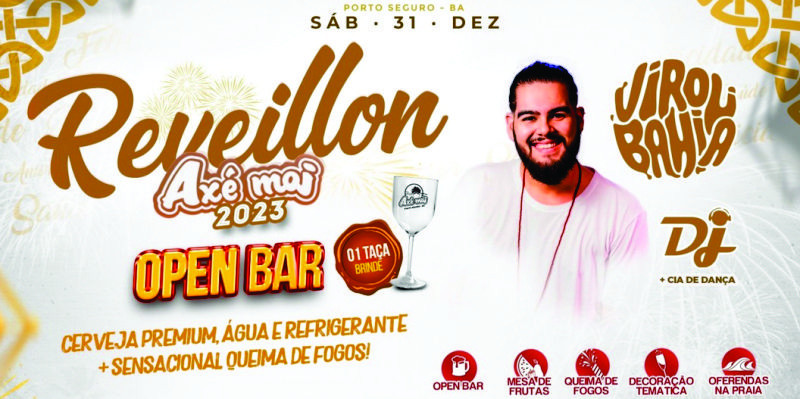 Uma virada de ano pé na areia, com open bar de cerveja premium, refrigerante e água, e banda ao vivo é o que te aguarda na Noite da Virada Axé Moi! Vamos brindar a chegada de 2023 em grande estilo. Você merece!