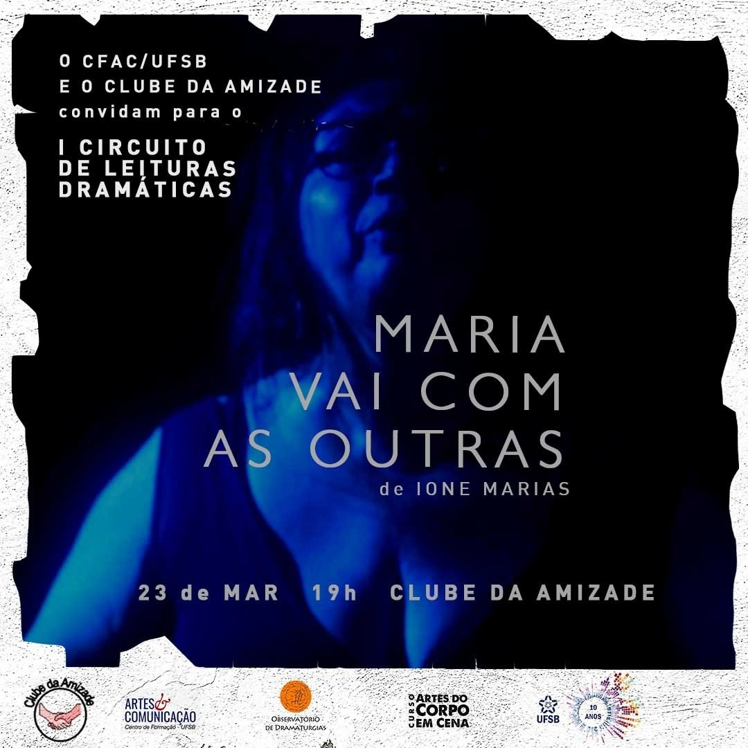No dia 23 de março, ocorrerá a Segunda Leitura Dramática do Projeto de Extensão que contará com a Leitura da peça "Maria Vai com as Outras", de autoria de Ione Maria.