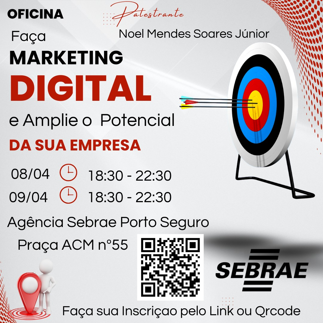 Terça e quarta, 08 e 09/04, das 18h30 às 22:30, no Sebrae (Praça ACM, 55 - Centro - Porto Seguro)