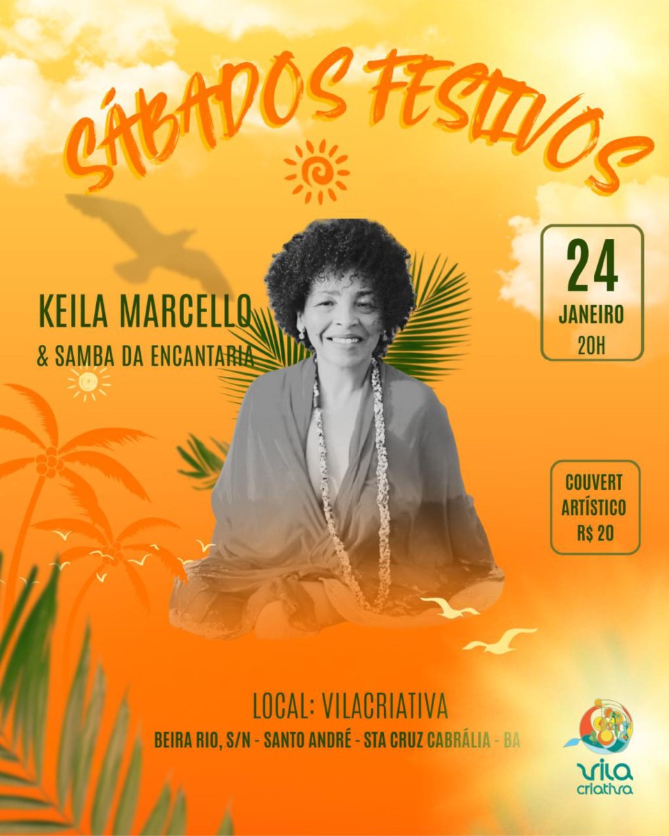Dia 24/01, às 20h, na Vila Criativa de Santo André, Santa Cruz Cabrália