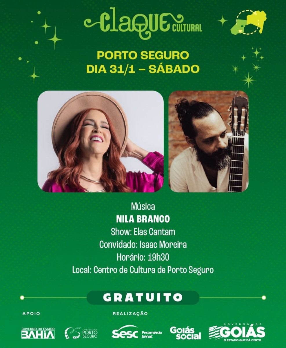 Dia 31/01 (sábado), às 19h30, no Centro de Cultura de Porto Seguro