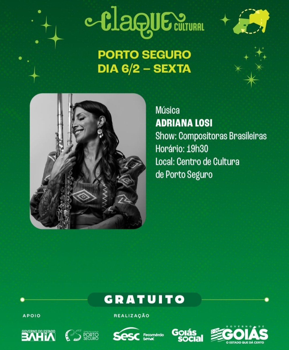Dia 06/02 (sexta), às 19h30, no Centro de Cultura de Porto Seguro