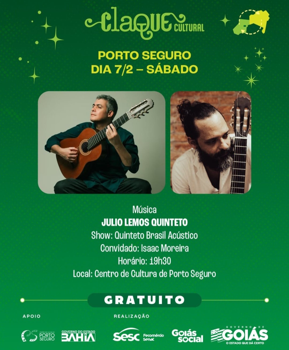 Dia 07/02 (sábado), às 19h30, no Centro de Cultura de Porto Seguro
