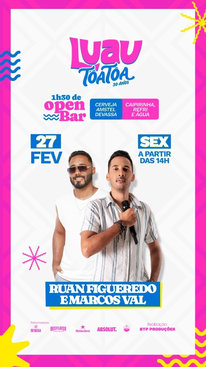 1h30 DE OPEN BAR - CERVEJA AMSTEL, DEVASSA. REFRI, CAIPIRINHA, ÁGUA