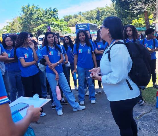 Antes da visita técnica, na escola, os estudantes participaram de uma palestra com o secretário e Aline. Eles apresentaram aos jovens o funcionamento da Setur; a importância da regulamentação da profissão; as responsabilidades do guia de turismo e o papel do setor como indústria limpa, que gera renda, emprego e oportunidades.