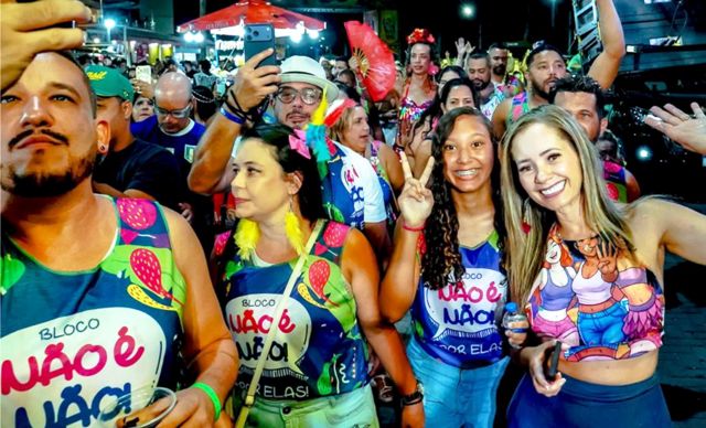 O bloco “Não é Não”, organizado pela secretaria municipal da Mulher, levou o recado sério contra o assédio sexual e a violência. “Quando uma mulher diz não, é não. Em Porto Seguro, violência contra a mulher não tem vez”, disse a subsecretária Clara Gomides.