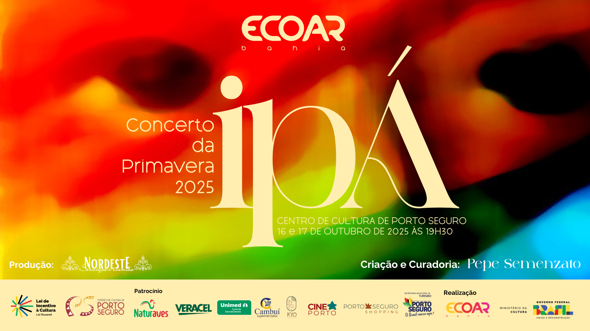 E as flores desabrocham para mais um evento do Instituto Ecoar - o Concerto da Primavera 2025. Nesta quinta (16) e sexta-feira (17), mais uma sinfonia de vozes, som e performances invadem o Centro de Cultura de Porto Seguro, para mostrar o poder de IPÁ, palavra da língua Yorubá que significa força, vigor e ímpeto, por meio da coreografia da Ecoar Cia Jovem de Dança, dos instrumentos e sinfonias da Camerata Jovem Ecoar e da Jazz Band que a acompanha e das poderosas vozes do Coral do Instituto.